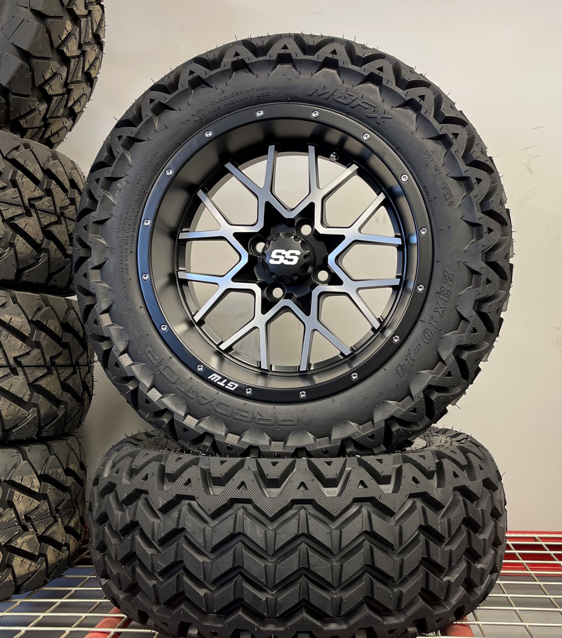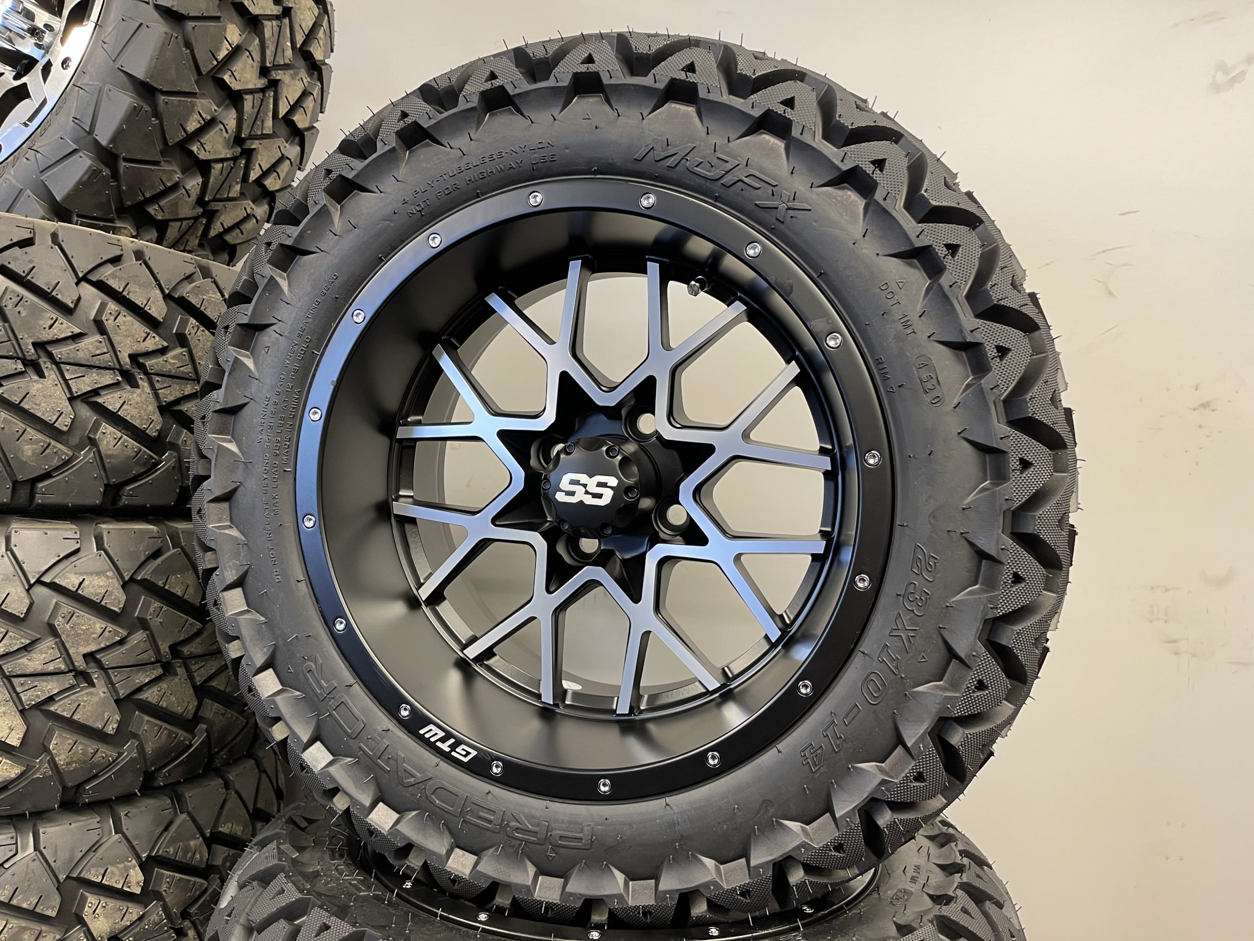 GTW Vortex Matte Black 23×14 Wheels PKG with Predator Tires
