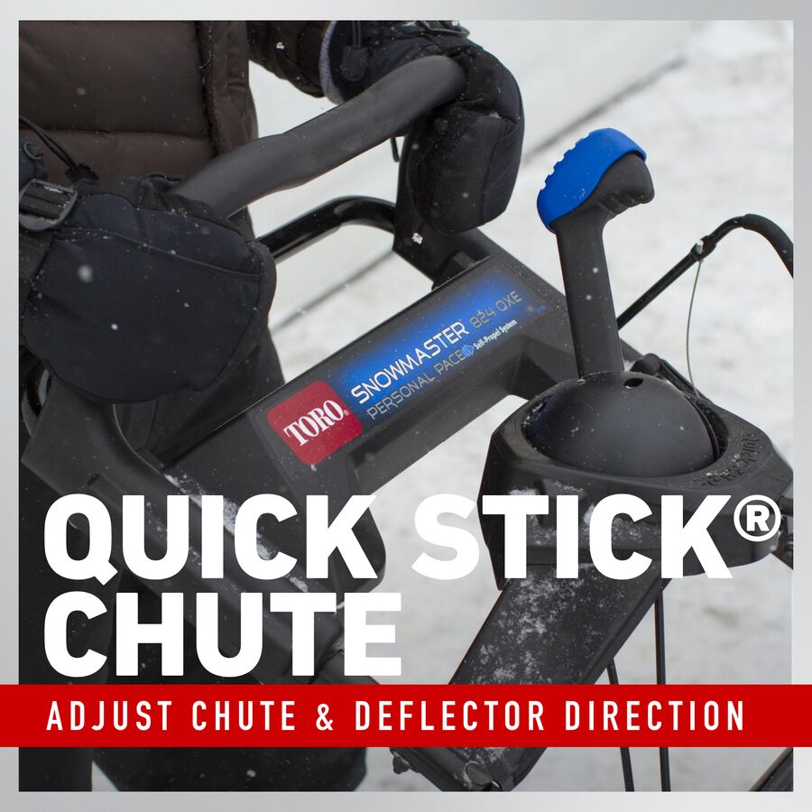 Features a Toro Premium 252cc OHV 4-cycle engine with electric start, this snow blower efficiently throws snow up to 45 feet. Tear through the roughest snow and ice in record time with Toro’s SnowMaster Snow Blower. Make snow blowing less work with the Self-propel Personal Pace® System, which matches your walking speed and provides better traction in all snow conditions. Quickly change the chute and deflector direction with a single, smooth motion thanks to the Quick Stick® chute control. It’s ultra-maneuverable, easy enough for anyone to handle and still powers through tough, end-of-driveway snow.